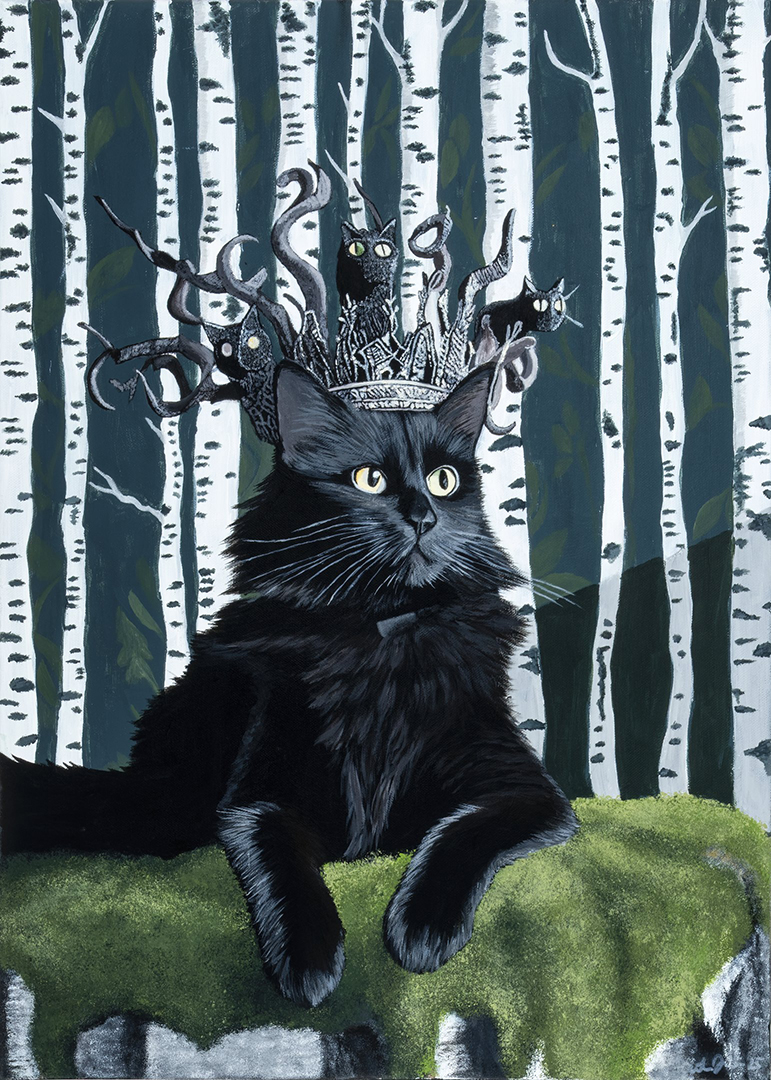 näkyy pieniä kissahahmoja — yksityiskohta, joka tuo teokseen