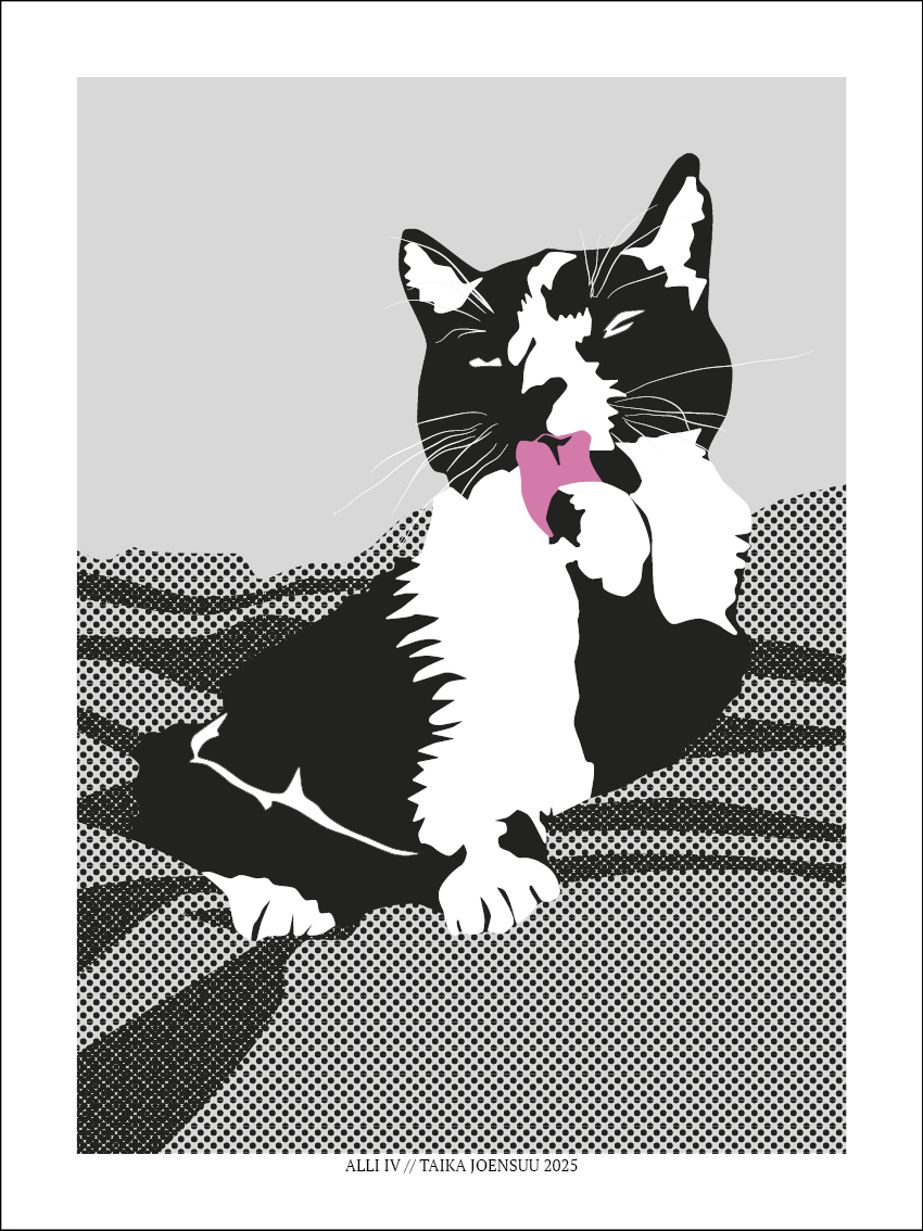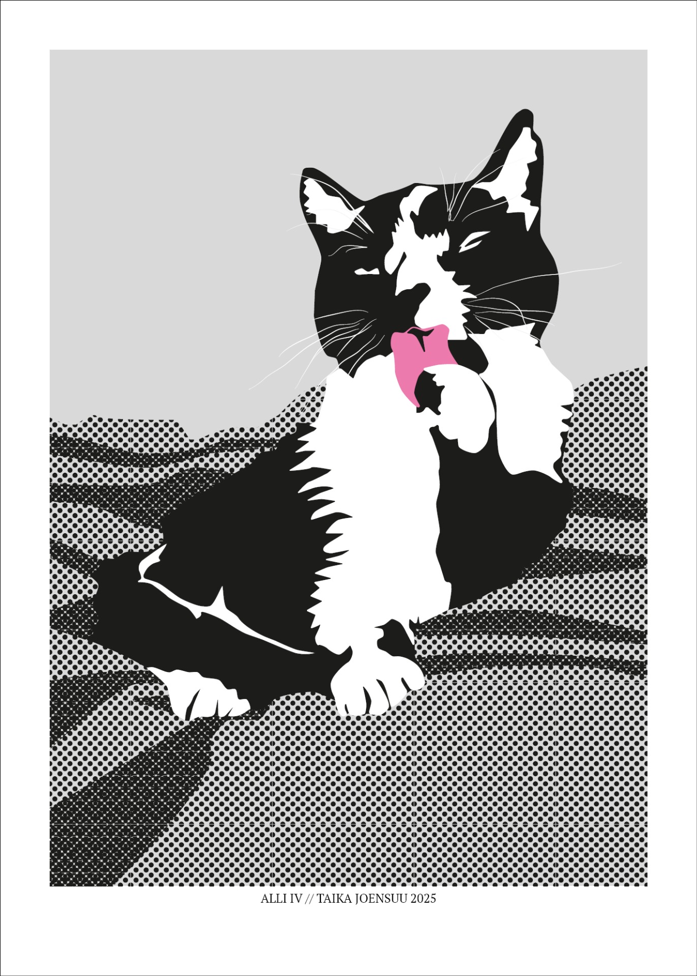 Alkuperäinen teos Taika Joensuun digitaalinen kissapiirustus.
