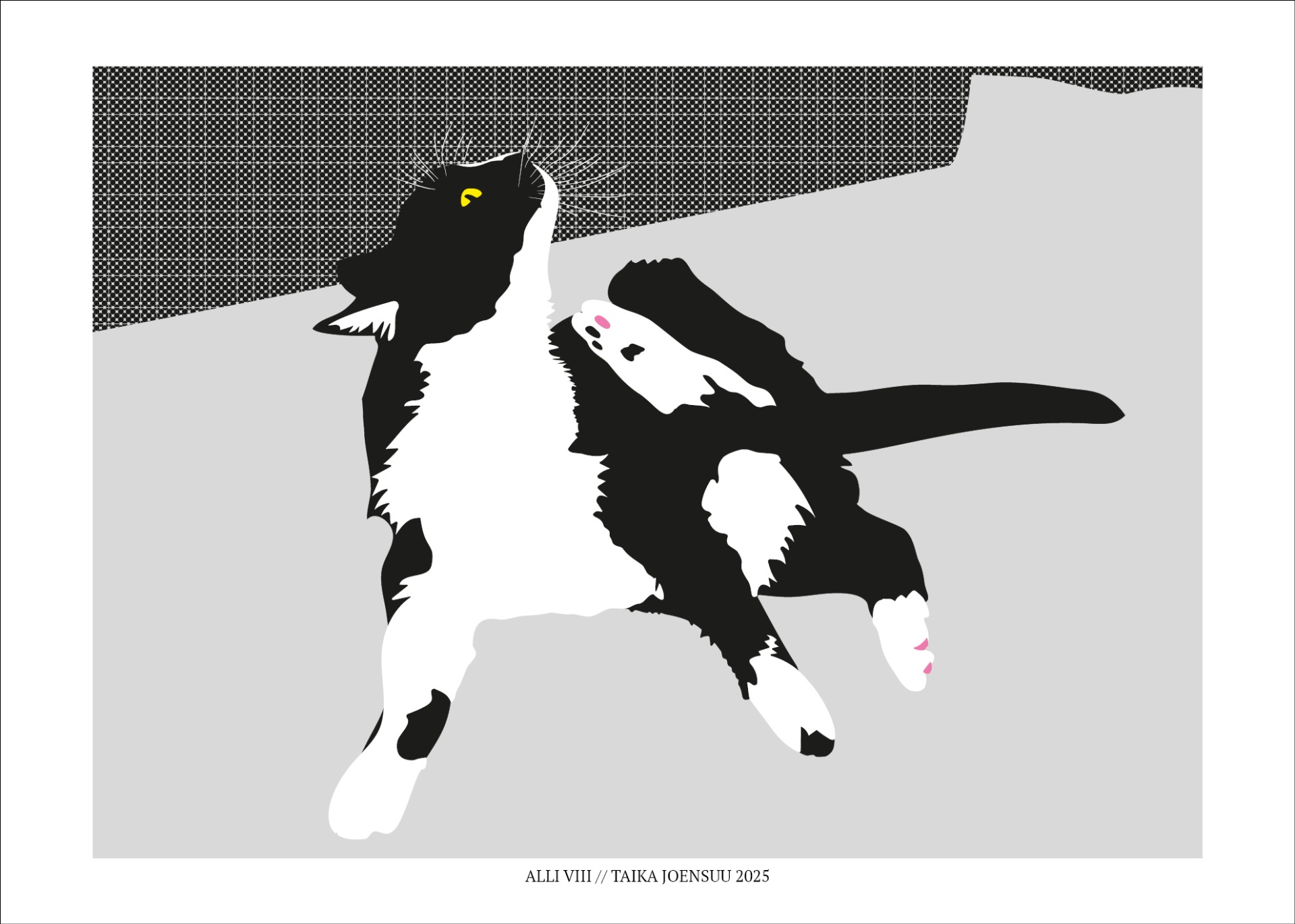 kissa on esitetty pelkistettynä, graafisena ja tyyliteltynä