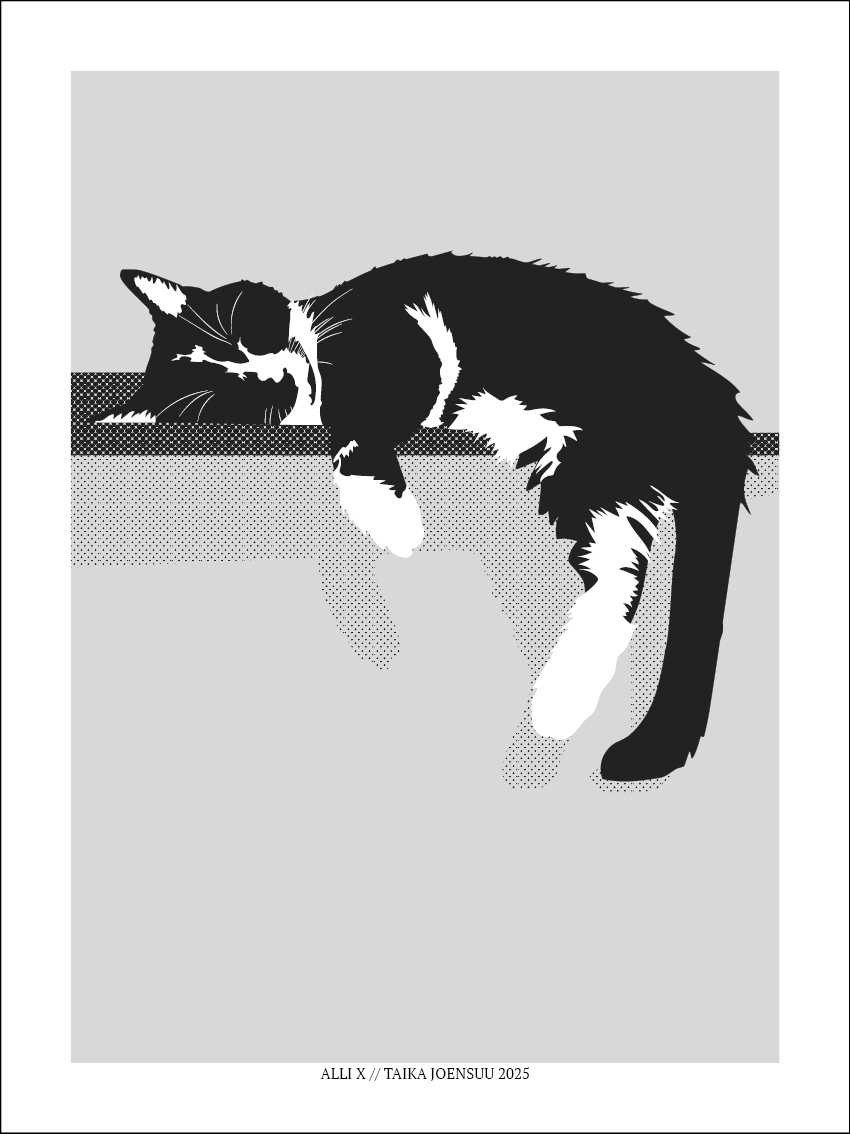 kissa on esitetty pelkistettynä, graafisena ja tyyliteltynä