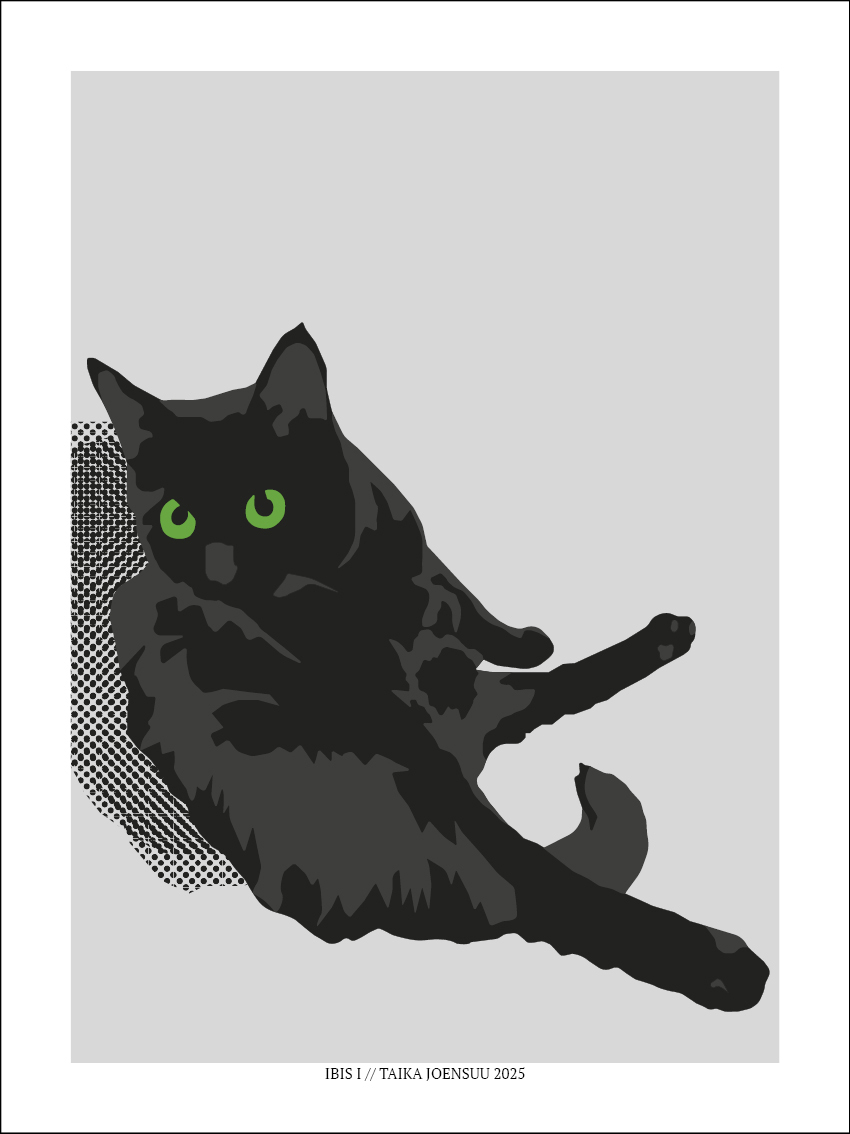 Alkuperäinen teos Taika Joensuun digitaalinen kissapiirustus.