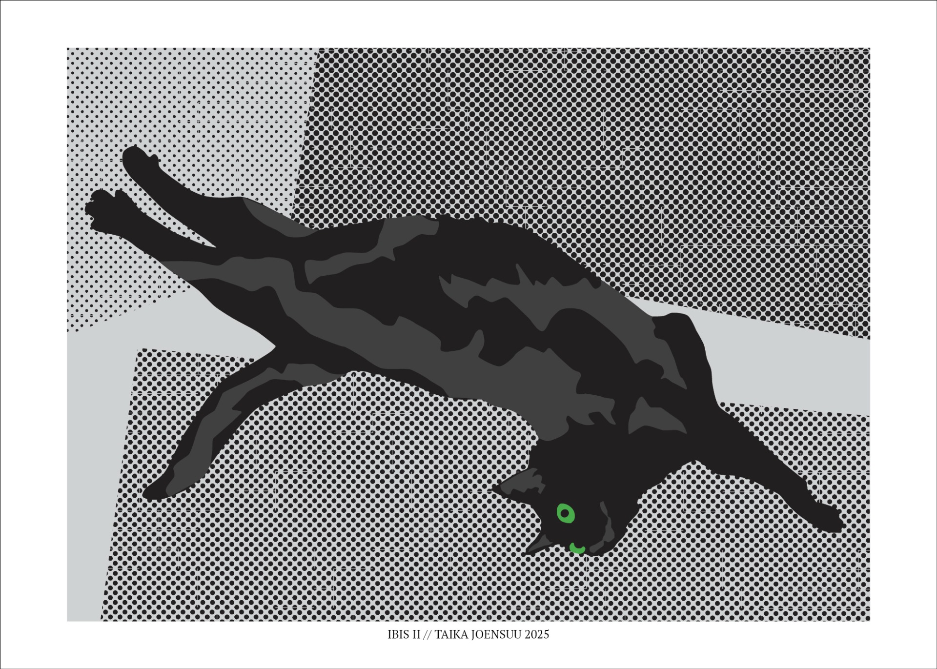 Alkuperäinen teos Taika Joensuun digitaalinen kissapiirustus.