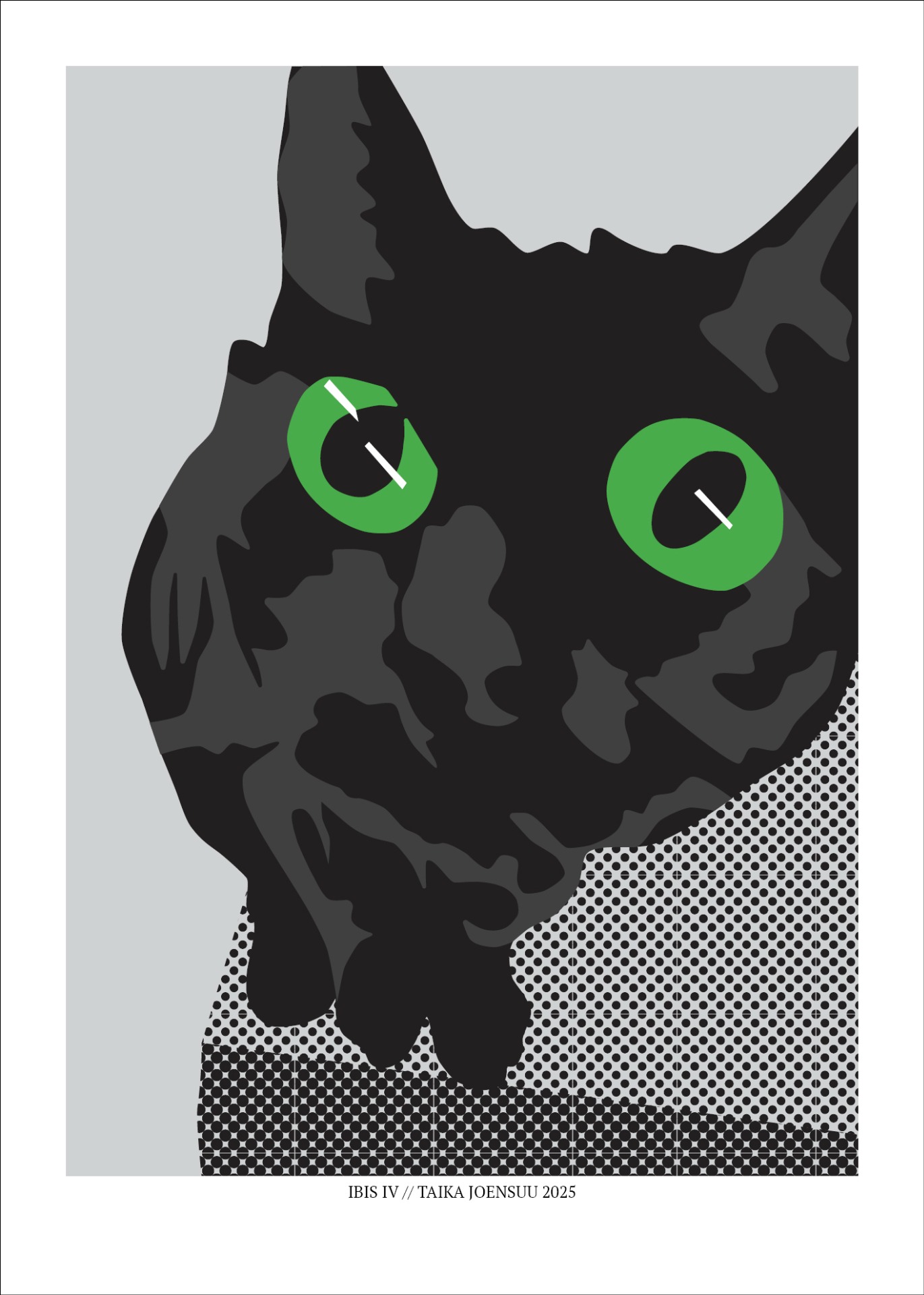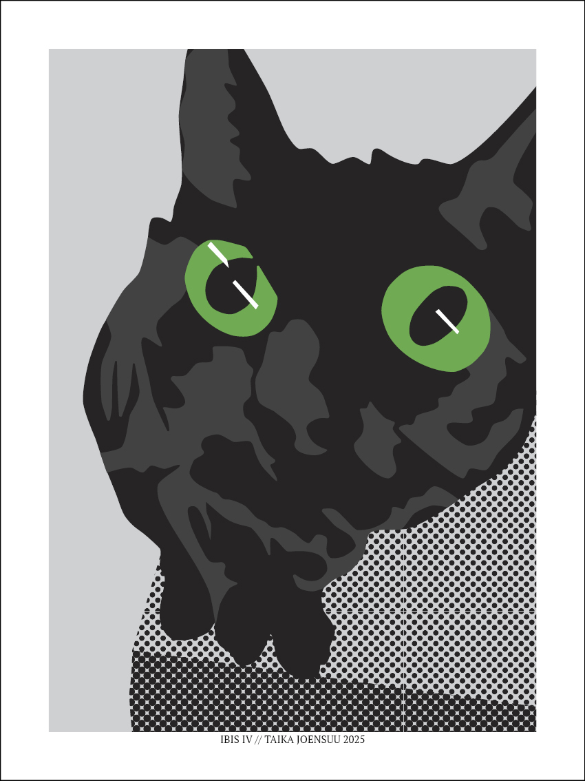 kissa on esitetty graafisena ja tyyliteltynä hahmona. Minimalistinen